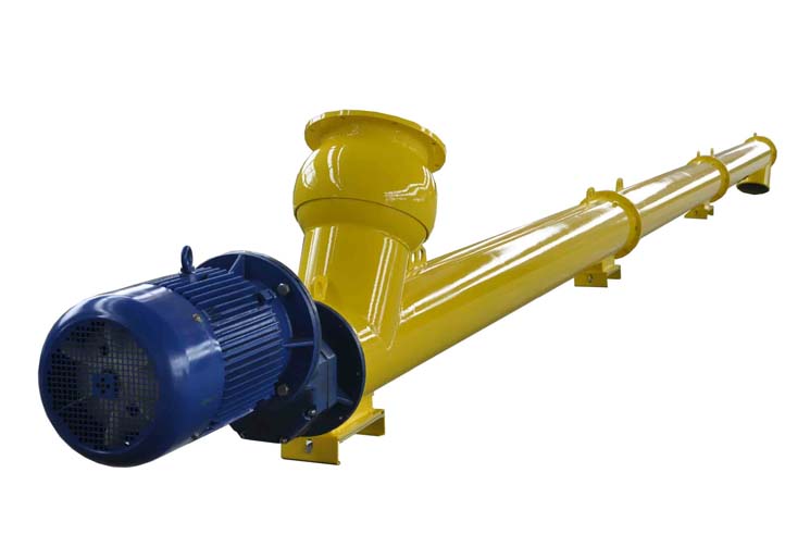 Винтовой транспортер представляет собой полую трубу (диаметр подбирается в зависимости от требуемой производительности), в которой вращается подающий винт. Витки винта изготовлены из листовой стали и приварены к валу. При вращении вала транспортируемый материал захватывается в загрузочном патрубке и равномерно перемещается его по всей длине конвейера. Для контроля процесса предусмотрены смотровые люки. Шнек (винт) приводится во вращение редуктором, мощность которого подбирается в зависимости от производительности. В зависимости от назначения привод шнека может быть смонтирован по тянущей или толкающей схеме.